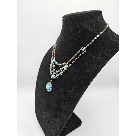 Vintage Y2K Blue and Silver Tone Bib Necklace Light Blue Stones