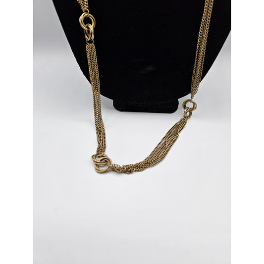 Vintage 1990s Brushed Gold Multi Strand Chain Necklace Long