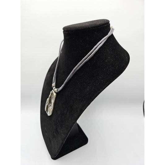 Chicos Rolled Leather Statement Pendant Necklace Mother of Pearl Nautical Boho