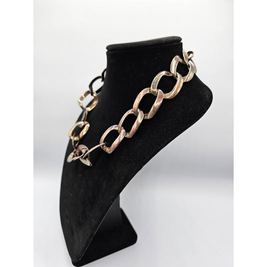 Chicos Womens Large Chain Necklace Gold Silver Tarnished Chunky Statement Piece