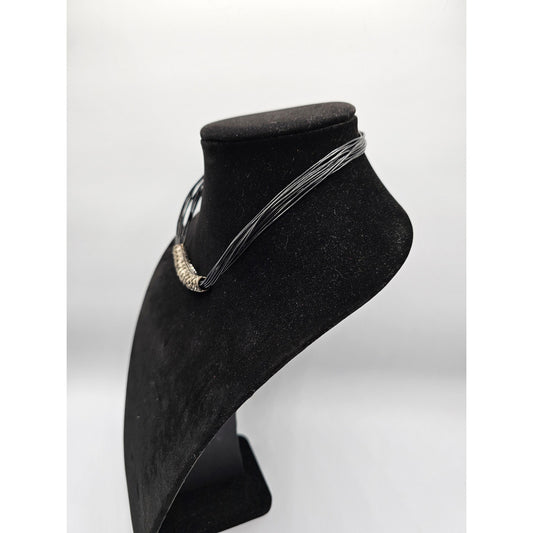 Vintage Mid Century Womens Button Bead Style Single Strand Necklace Black Gold