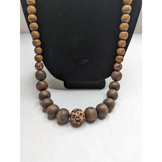 Vintage Single Strand Wooden Round Bead Graduated Necklace