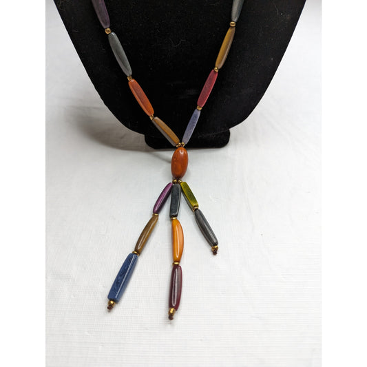 Vintage Mod Colorful Rainbow Beaded Pendant Necklace