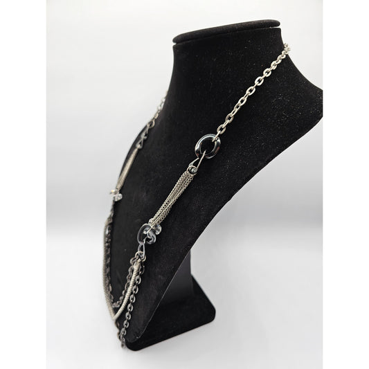 Vintage Y2K Statement Piece Necklace Silver Tone Multi Strand Crystal Accents
