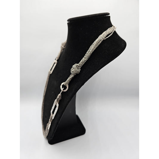 Vintage Long Bright Silver Multi Strand Elegant Necklace Knotted Chain