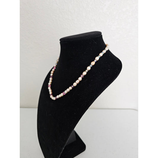 Vintage Y2K Single Strand Beaded Necklace Faux Pearl With Rhinestones Dainty