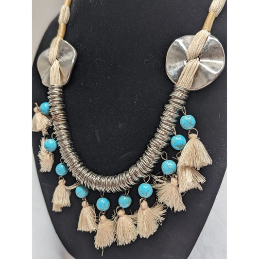 Vintage Native American Rope Style Necklace Tassels Turquoise Beaded Statement