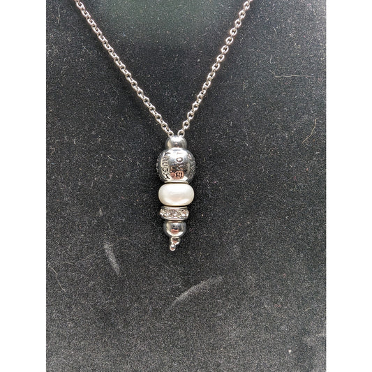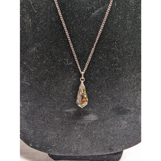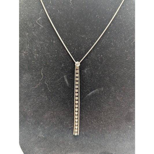 Vintage Luisa Womens Silvertone Necklace w/ Rhinestone Pendant Delicate Dainty