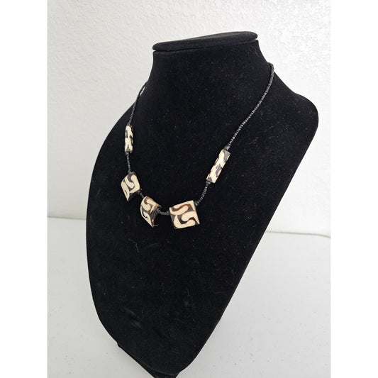 Vintage Mid Century Single strand Beaded Necklace Cream and Brown Accents
