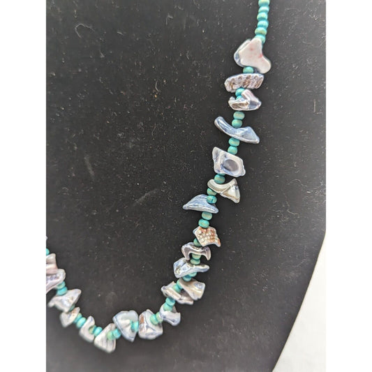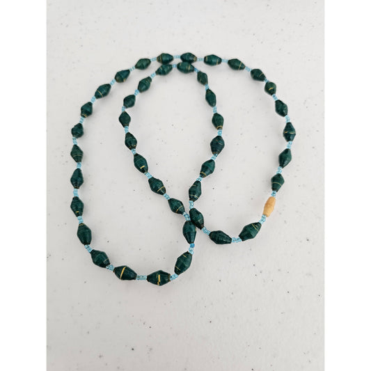 NecklaceVintage 1990s Single Strand Beaded NEcklace Green and Blue BEads