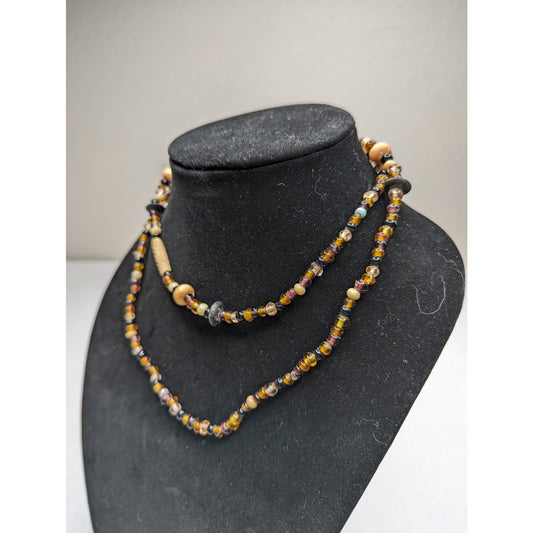 Vintage 1970s Single Strand Glass Beaded Necklace Multi Colors Earthtones