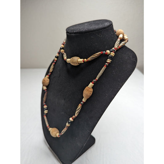 Vintage 1970s Womens Chunky Wooden Bead Single Strand Necklace Tribal Cork