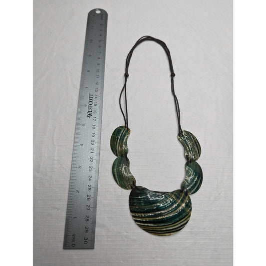 Vintage Womens Rope chain and Shell Statement Piece Necklace Blue Green Nautical