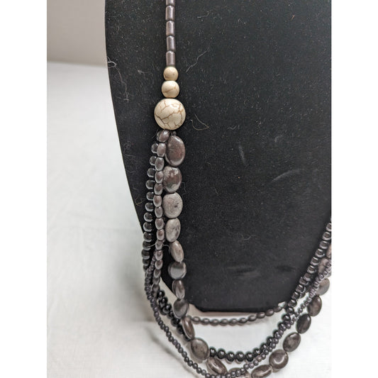 Vintage Long Multi Strand Beaded Necklace Gray Tone Beads