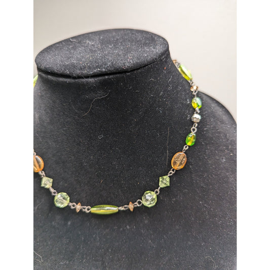 Vintage Y2K Single Strand Beaded Chain Necklace Choker Green Orange