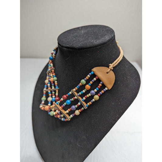 Vintage Multi Strand Multi Stone Colorful Necklace Leather Accents