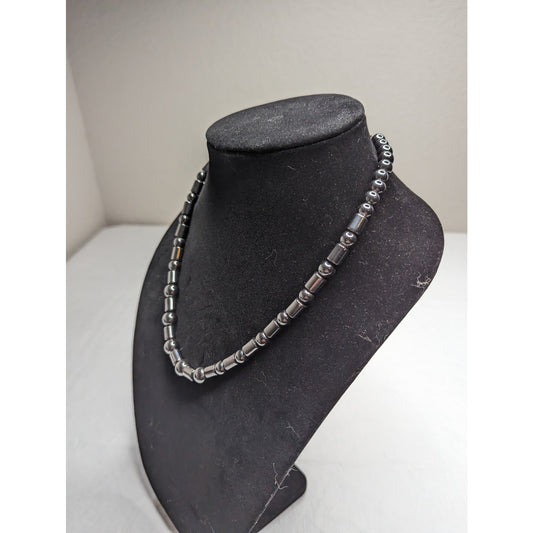 Vintage 1990s Geometric Single Strand Long Necklace Black and Silver
