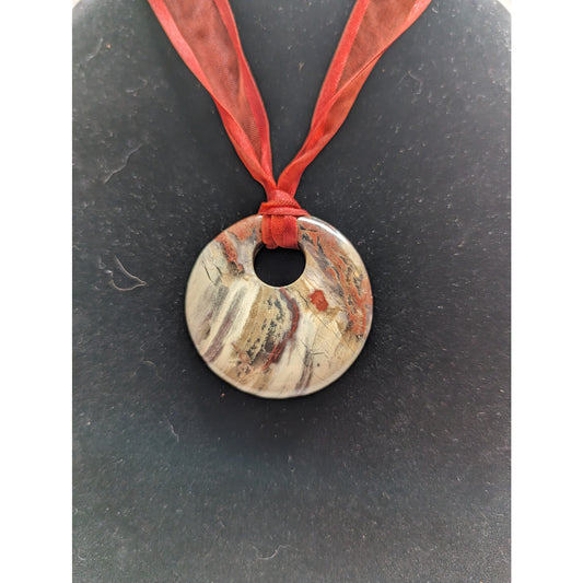 Vintage Y2K Ribbon Style Round Stone Pendant Necklace Red Beige