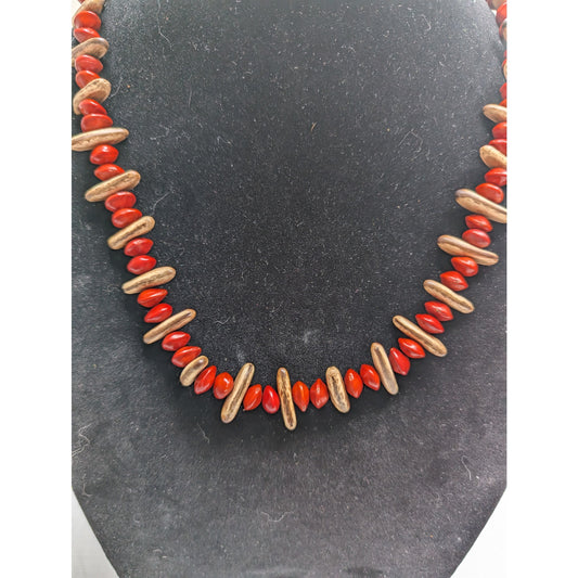 Vintage Mid Century Red and Brown Single Strand Beaded Necklace