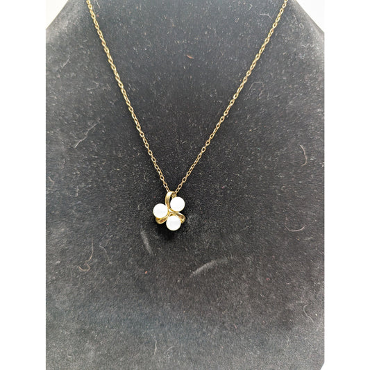Vintage 1990s Gold Tone Chain Pendant Necklace 3 Ivory Pearls
