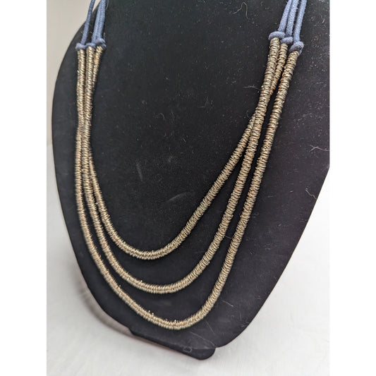 Vintage 1990s Womens 3 Strand Statement Necklace Gold Rope Wrapped Blue Knotted