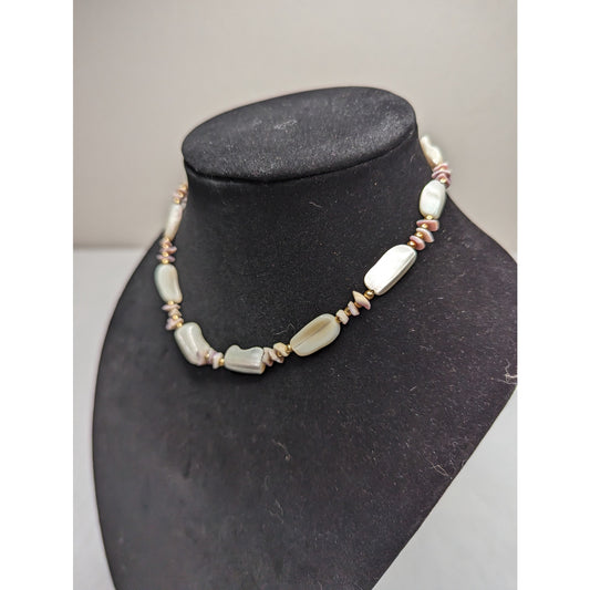 Vintage 1990s Single Strand Beaded Necklace Cream and Light Pink Stones