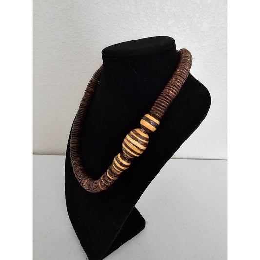 Vintage 1960s Wooden Choker Style Necklace Brown Disk Beads