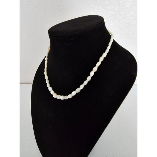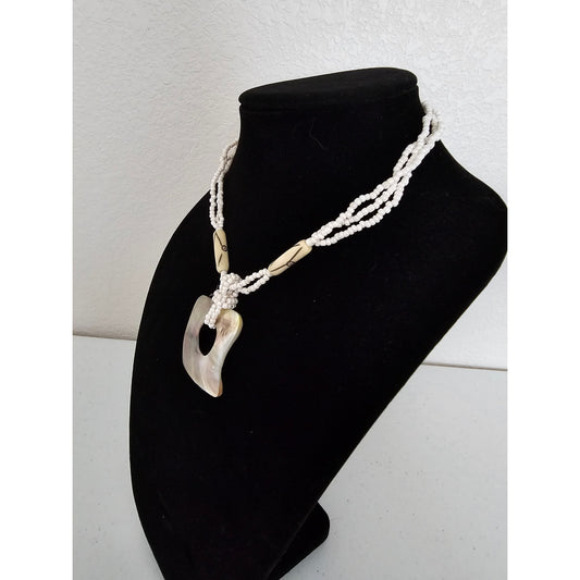 Vintage 1980s Pendant Style Mother of Pearl Necklace White Seed Bead