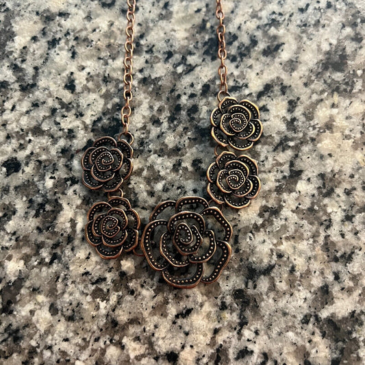 Paparazzi Womens Necklace and Earring Set Rose Flower Bronze