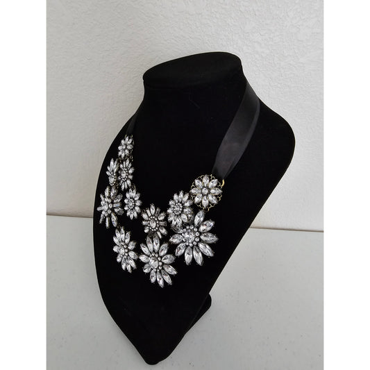 Vintage Y2K Statement Piece Bold Necklace Floral Rhinestones White Black