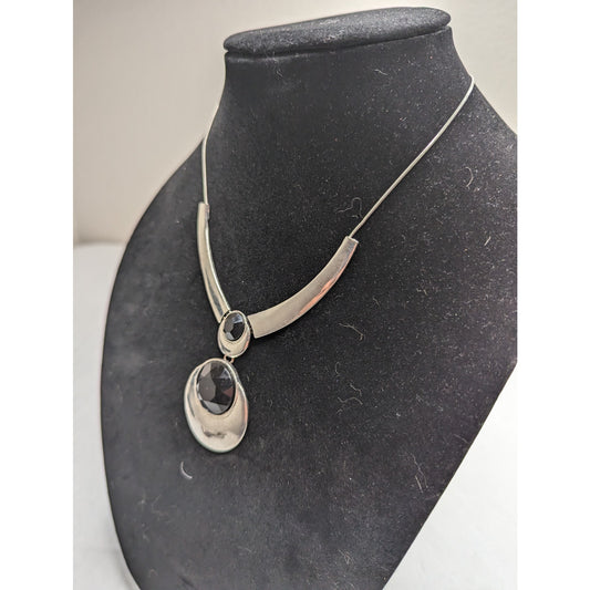 Vintage 1980s Womens Statement Piece Necklace Silver Tone and Black