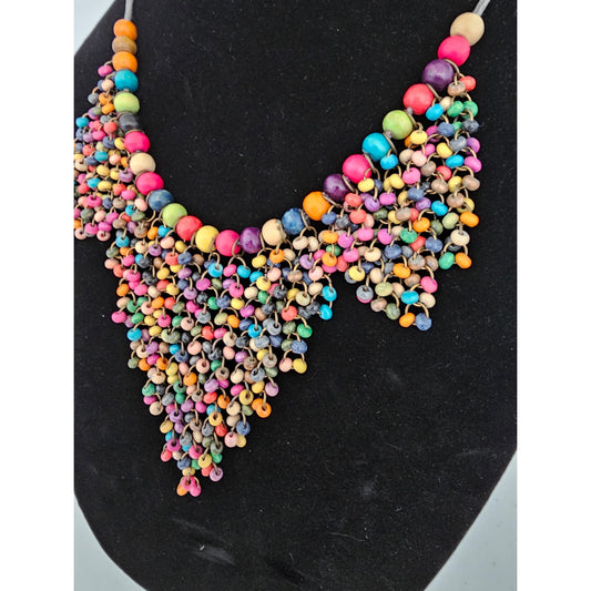 Vintage Y2K Wooden Beaded Bib Style Necklace Rainbow Pride