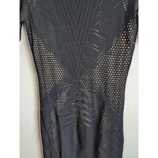 Gap Womens Sz S Cableknit Knee Length Sweater Dress Black Long Sleeve