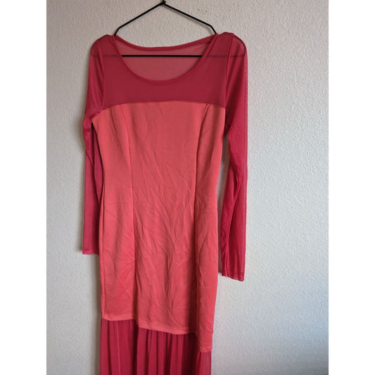 Vintage Y2K New Bell Womens Sz L Maxi Dress Long Sleeve Mesh Coral Pink