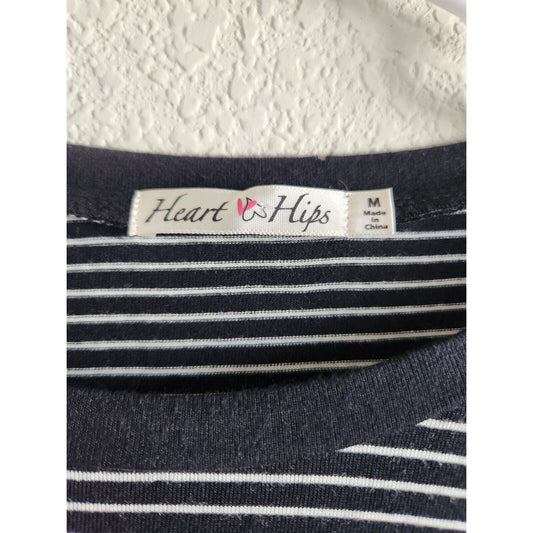 Heart & Hips Womens Sz M Midi T shirt dress Black White Striped