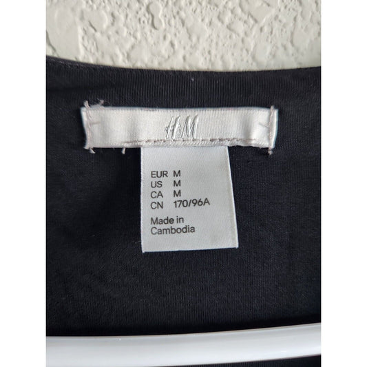 H&M Womens Sz M Solid Black Faux Wrap Midi Dress