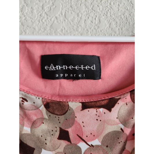 Connected Apparel Womens Sz M Sheath Career Dress Brown Pink Dots
