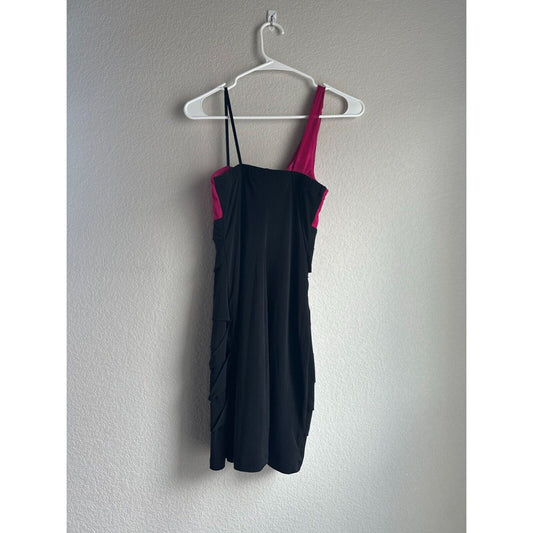 Vintage Y2K City Triangles Womens Sz S Pink and Black One Shoulder Dress