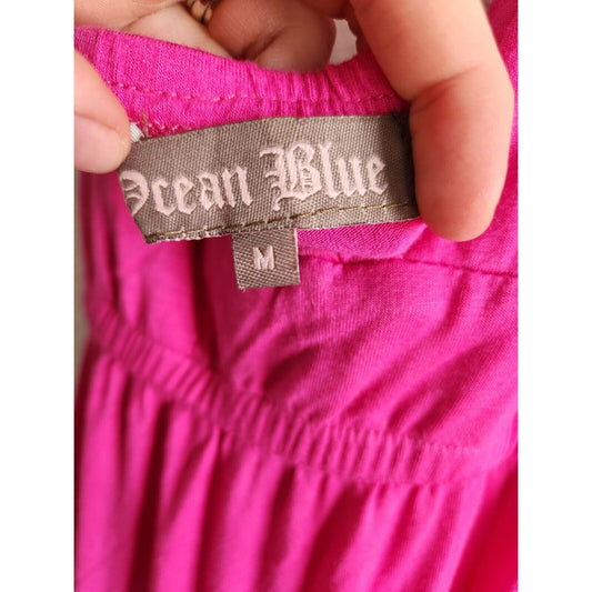 Vintage Ocean Blue Womens Sz M Maxi Dress Halter Beaded Bright Pink