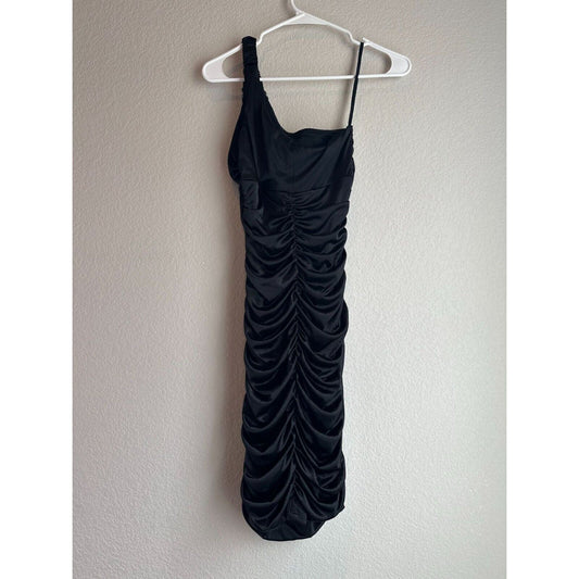 Vintage Y2K Ruby Rox Womens Sz S One Shoulder Dress Black Satin Knee Length