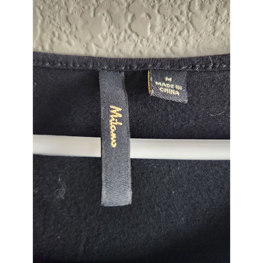 Merona Womens Sz M Knee Length Belted Short Sleeve Dress Solid Black