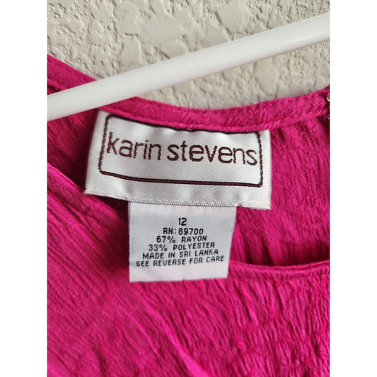 Karin Stevens Womens Sz 12 Bright Pink Maxi Dress Sleeveless Summer Vintage