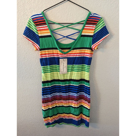 Derek Heart Womens Sz M Mini Dress Rainbow Striped Short sleeve NEW