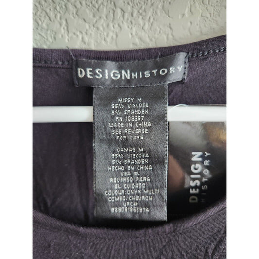 Design History Womens Sz M Short Sleeve Maxi Dress Black Chevron NEW