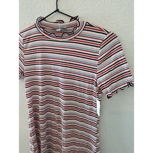 Vintage Y2K Stillettos Womens Sz M Ribbed T Shirt Dress Striped Colorful NEW