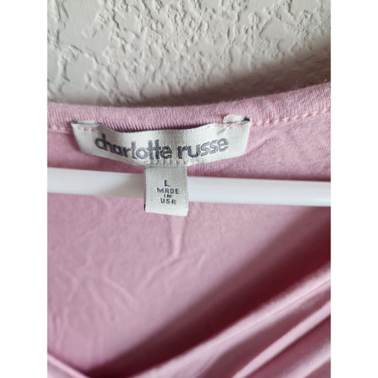 Vintage Charlotte Russe Womens Sz L Blush Pink V Neck Faux Wrap Dress