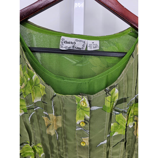 Vintage 1990s United Team Womens Sz M Maxi Dress Avocado Green Floral