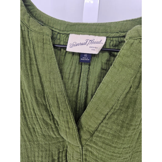 Universal Threads Womens Sz XS Knee Length Green Dress Gauzy Short Sleeve