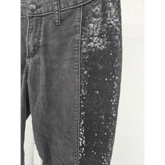 Bebe Jeans Womens Sz 27 (4) Super Skinny Mid Rise Jeans Black w/ Sequin Sides