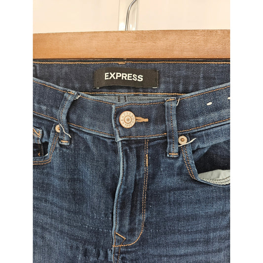 Express Womens Sz 4 Mid Rise Legging Style Blue Jeans Distressed Dark Wash